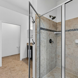 Upstairs, the primary suite feels like a true escape. Vaulted ceilings create an airy, open feel, while the en-suite bathroom is designed with comfort in mind—featuring dual vanities, granite countertops, a walk-in shower, and a separate water closet for added privacy. The laundry room’s location on the bedroom level adds a layer of everyday ease that homeowners truly appreciate.